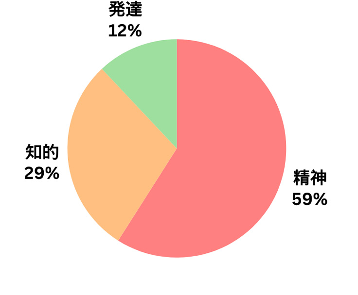 うつ病・統合失調症・不安障害・適応障害・双極性障害・PTSD・パニック障害・自閉症・ADHD ・アスペルガー症候群・学習障害・肢体不自由・内部障害 など