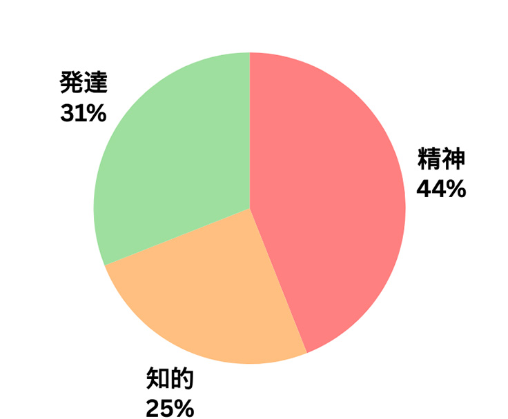 うつ病・統合失調症・不安障害・適応障害・双極性障害・PTSD・パニック障害・自閉症・ADHD ・アスペルガー症候群・学習障害・肢体不自由・内部障害 など